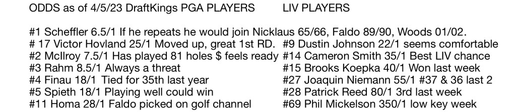 #1 John Rahm-7 65 Four putted DB 6 on first hole, then shot -9 for next 17. Sam Snead only player with a double bogie start to win in1952. Rahm’s lowest round in Masters history.