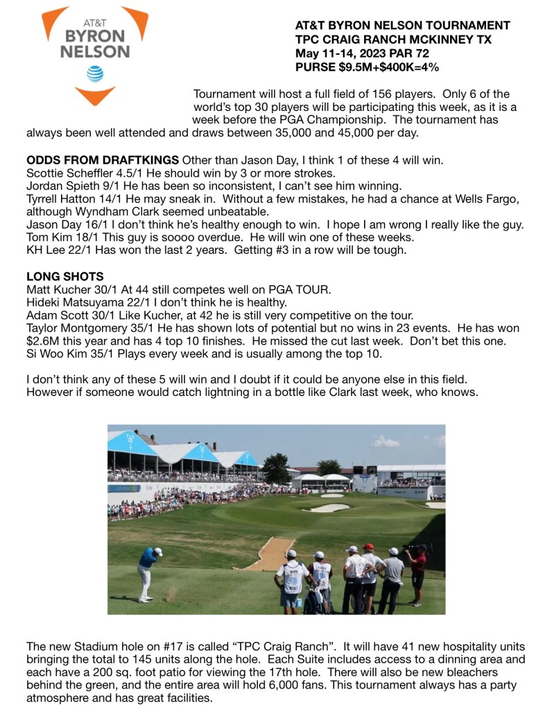 The new Stadium hole on #17 is called “TPC Craig Ranch”. It will have 41 new hospitality units bringing the total to 145 units along the hole. Each Suite includes access to a dinning area and each have a 200 sq. foot patio for viewing the 17th hole. There will also be new bleachers behind the green, and the entire area will hold 6,000 fans. This tournament always has a party atmosphere and has great facilities.