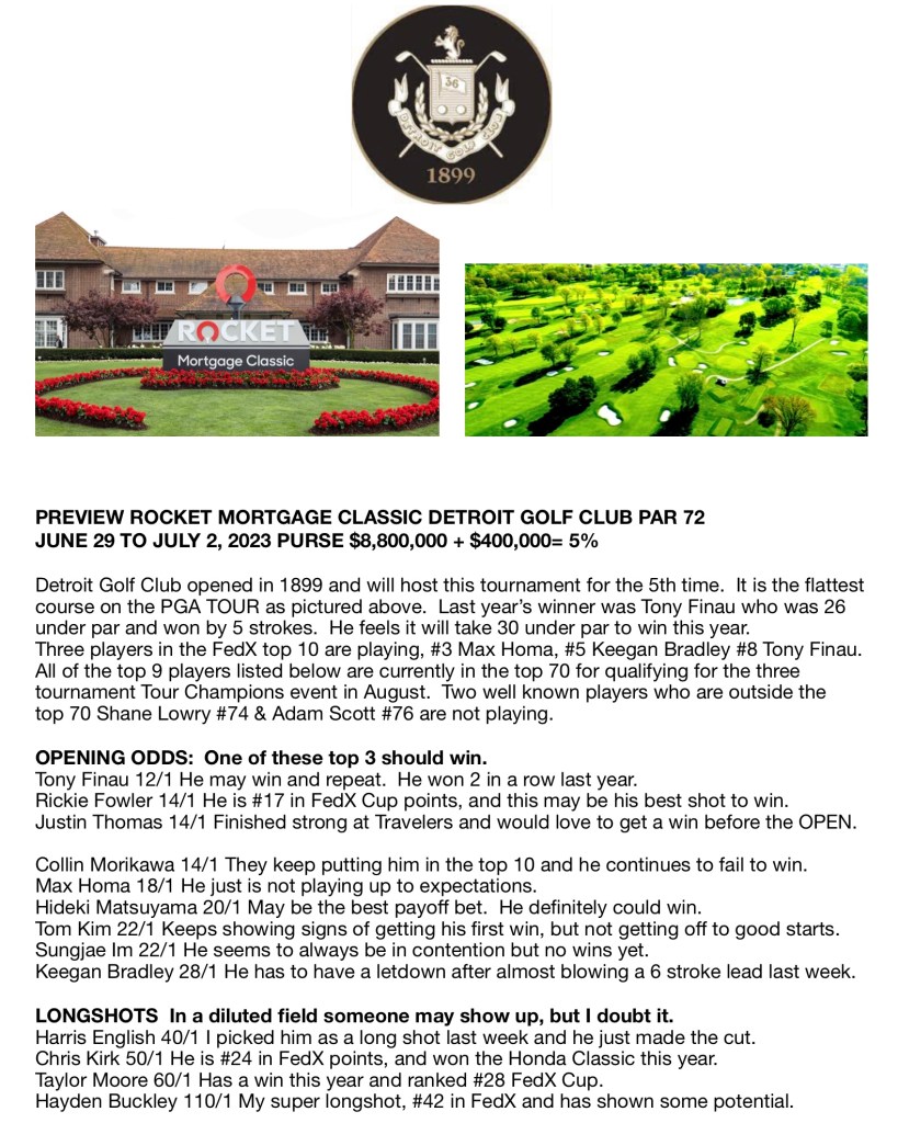 PREVIEW ROCKET MORTGAGE CLASSIC DETROIT GOLF CLUB PAR 72