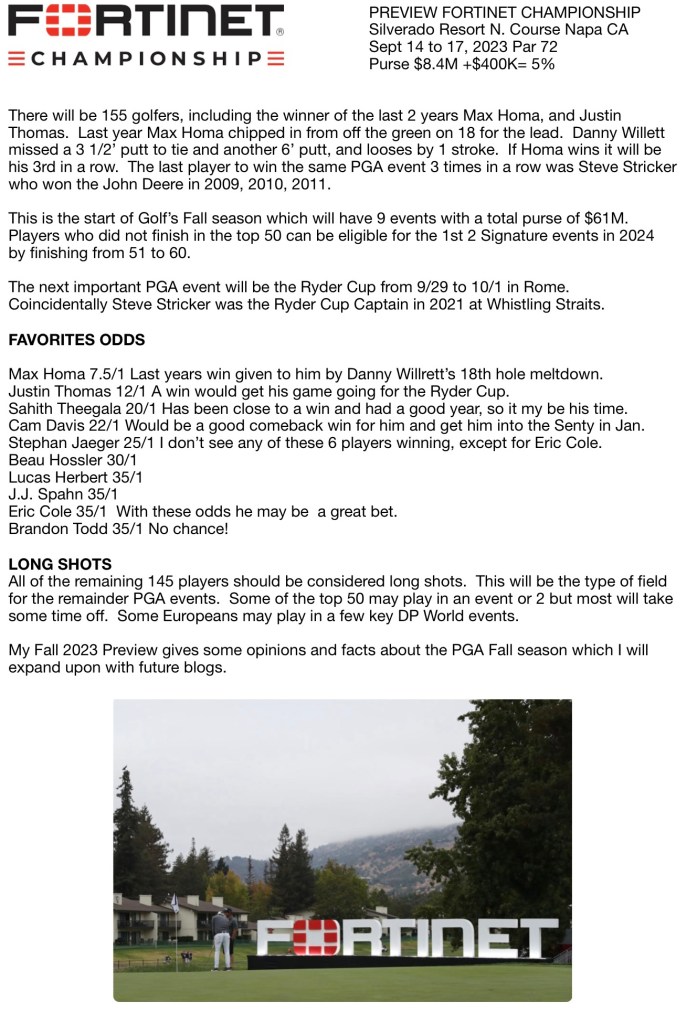 My Fall 2023 Preview gives some opinions and facts about the PGA Fall season which I will expand upon with future blogs.