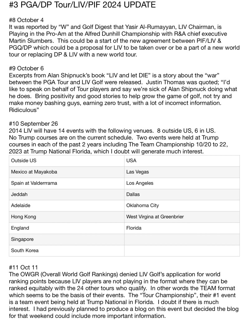 #3 PGA/DP Tour/LIV/PIF 2024 UPDATE