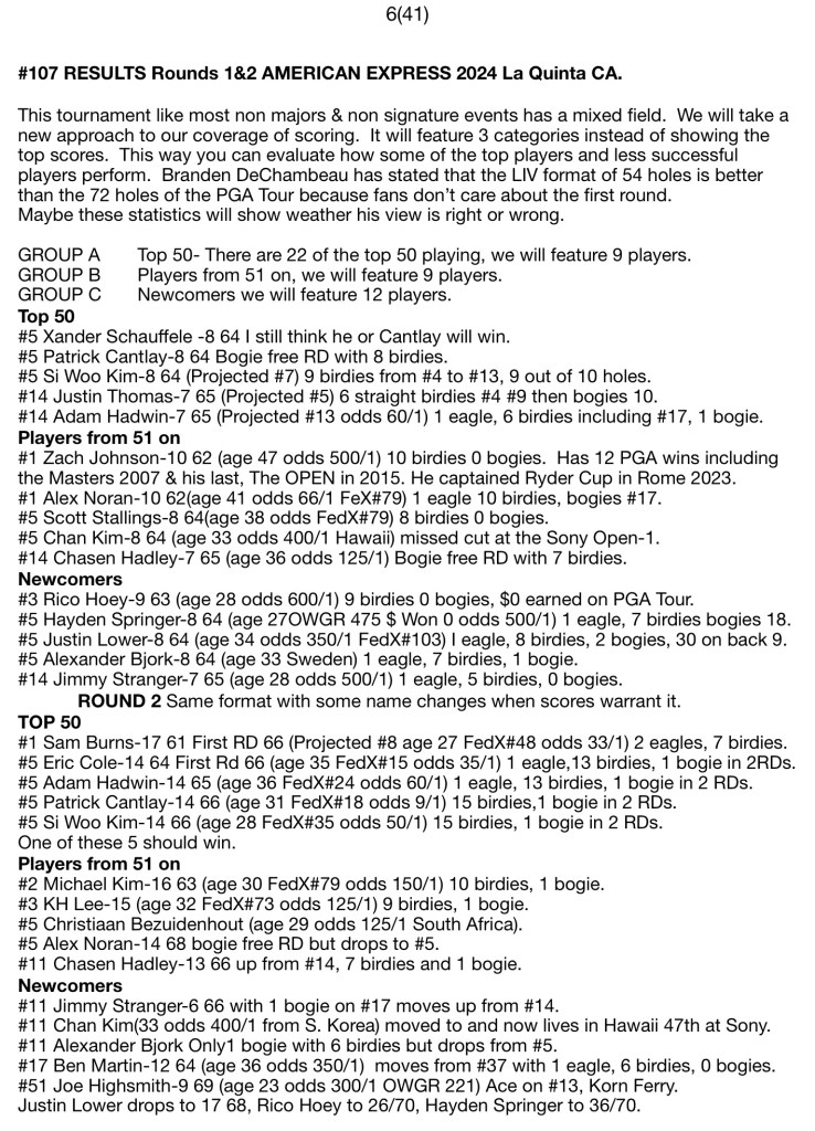 #107 RESULTS Rounds 1&2 AMERICAN EXPRESS 2024 La Quinta CA.