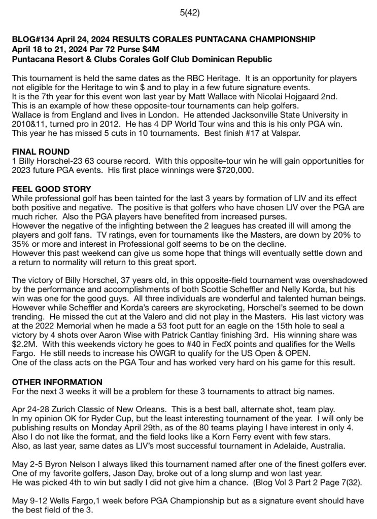 BLOG#134 April 24, 2024 RESULTS CORALES PUNTACANA CHAMPIONSHIP