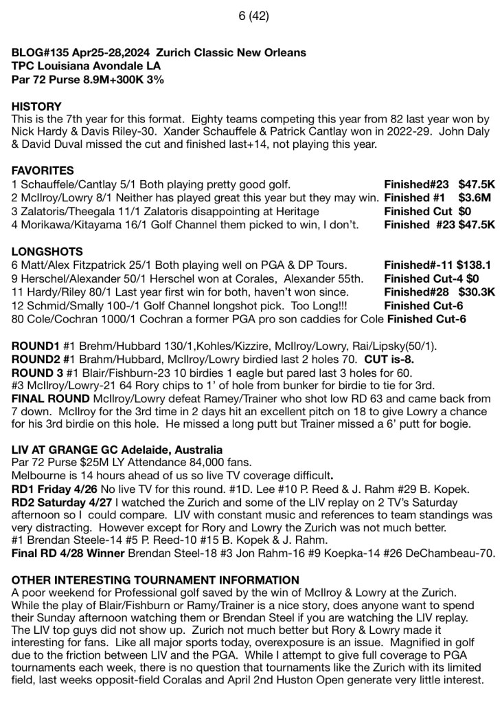 BLOG#135 Apr25-28,2024 Zurich Classic New Orleans