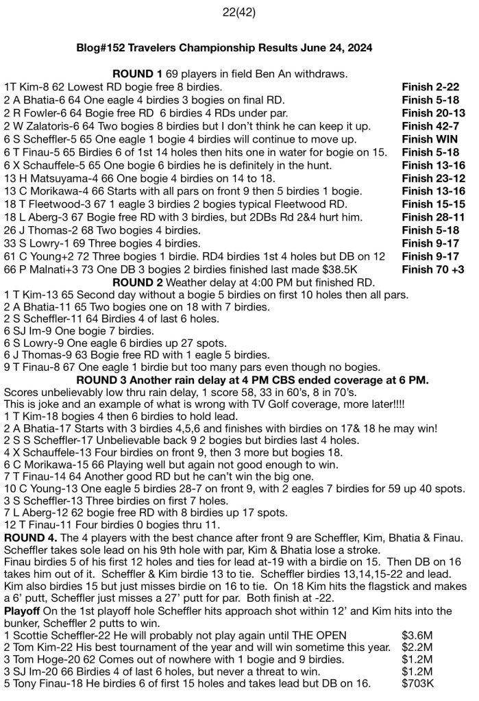 18 L Aberg-3 67 Bogie free RD with 3 birdies, but 2DBs Rd 2&4 hurt him. Finish 28-11 26 J Thomas-2 68 Two bogies 4 birdies. Finish 5-18
