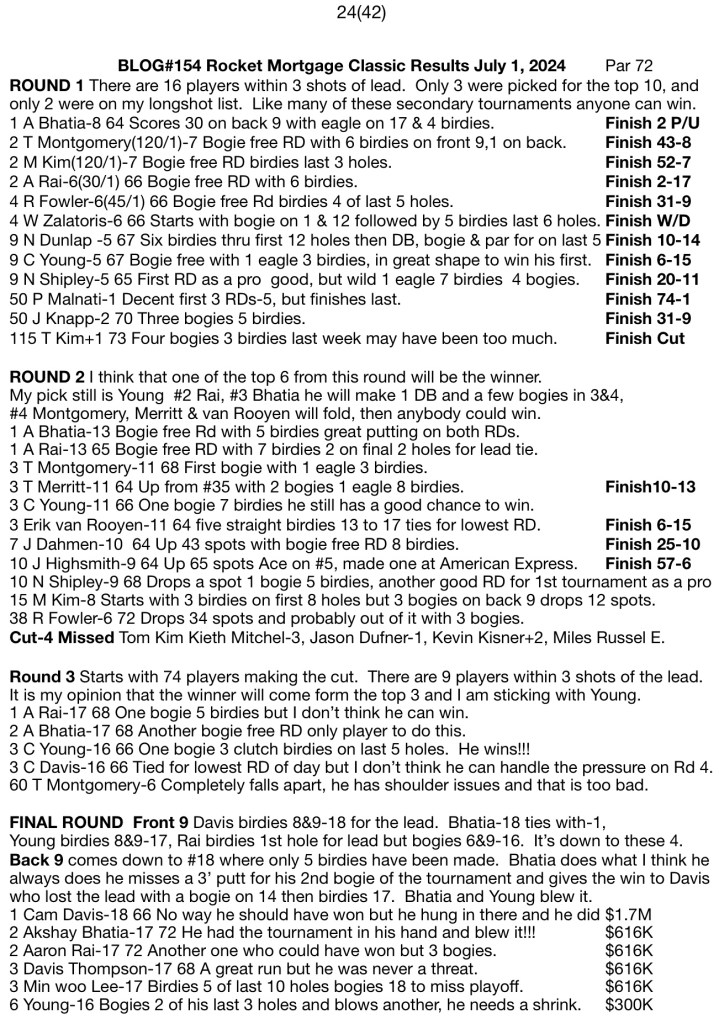 BLOG#154 Rocket Mortgage Classic Results July 1, 2024 Par 72