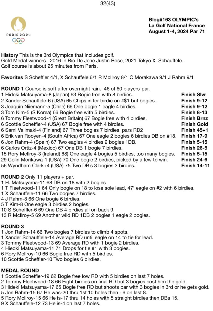 3 Hideki Matsuyama-17 65 Bogie free RD but shoots par with 3 bogies in 3rd or he gets gold.