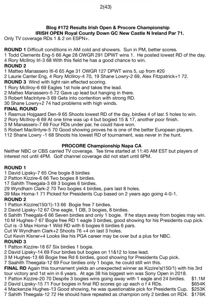 Blog #172 Results Irish Open & Procore Championship