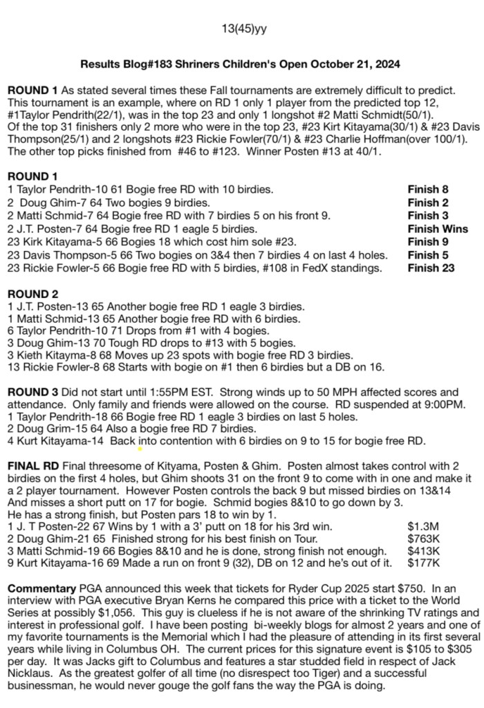 Results Blog#183 Shriners Children’s Open October 21, 2024