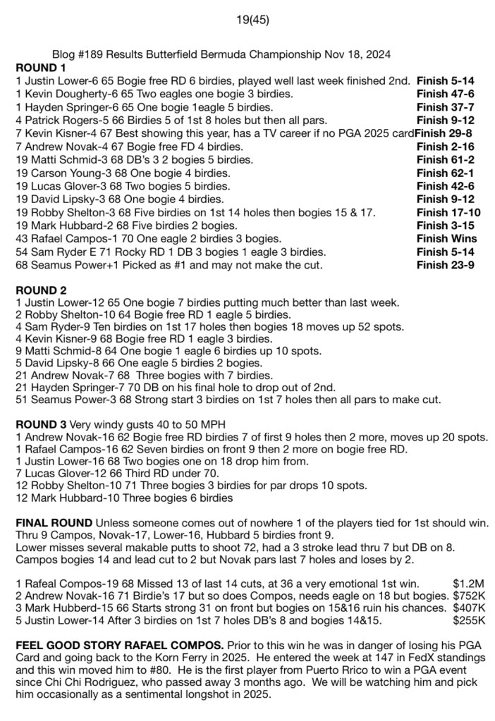 Blog #189 Results Butterfield Bermuda Championship Nov 18, 2024