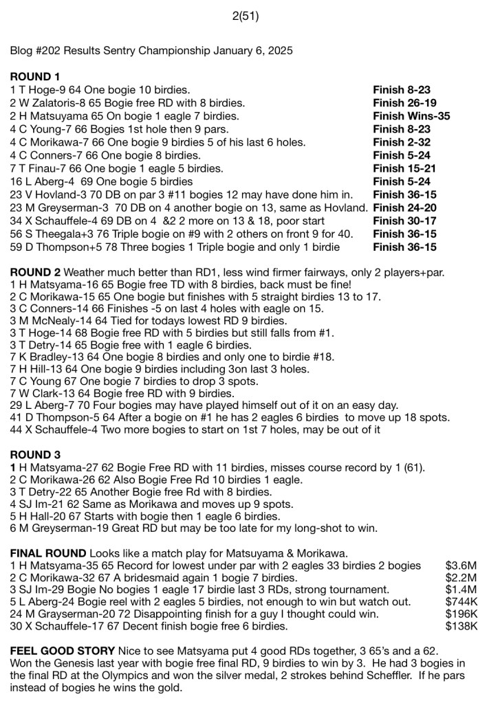 2 W Zalatoris-8 65 Bogie free RD with 8 birdies. Finish 26-19