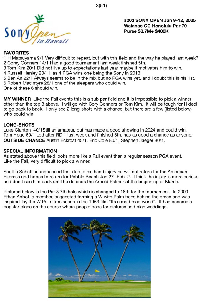 #203 SONY OPEN Jan 9-12, 2025