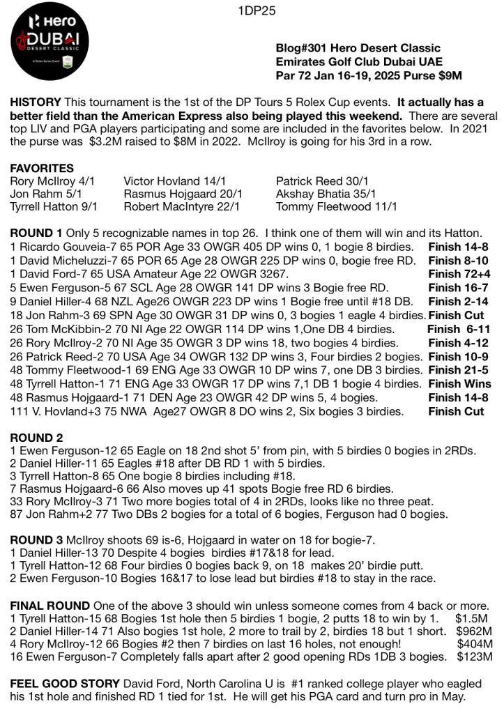 HISTORY This tournament is the 1st of the DP Tours 5 Rolex Cup events. It actually has a better field than the American Express also being played this weekend. There are several top LIV and PGA players participating and some are included in the favorites below. In 2021 the purse was $3.2M raised to $8M in 2022. McIlroy is going for his 3rd in a row.