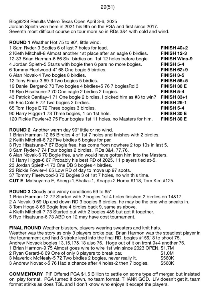 Blog#229 Results Valero Texas Open April 3-6, 2025