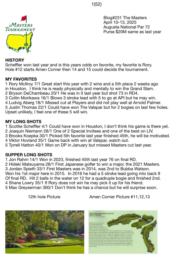 Scheffler won last year and is this years odds on favorite, my favorite is Rory.