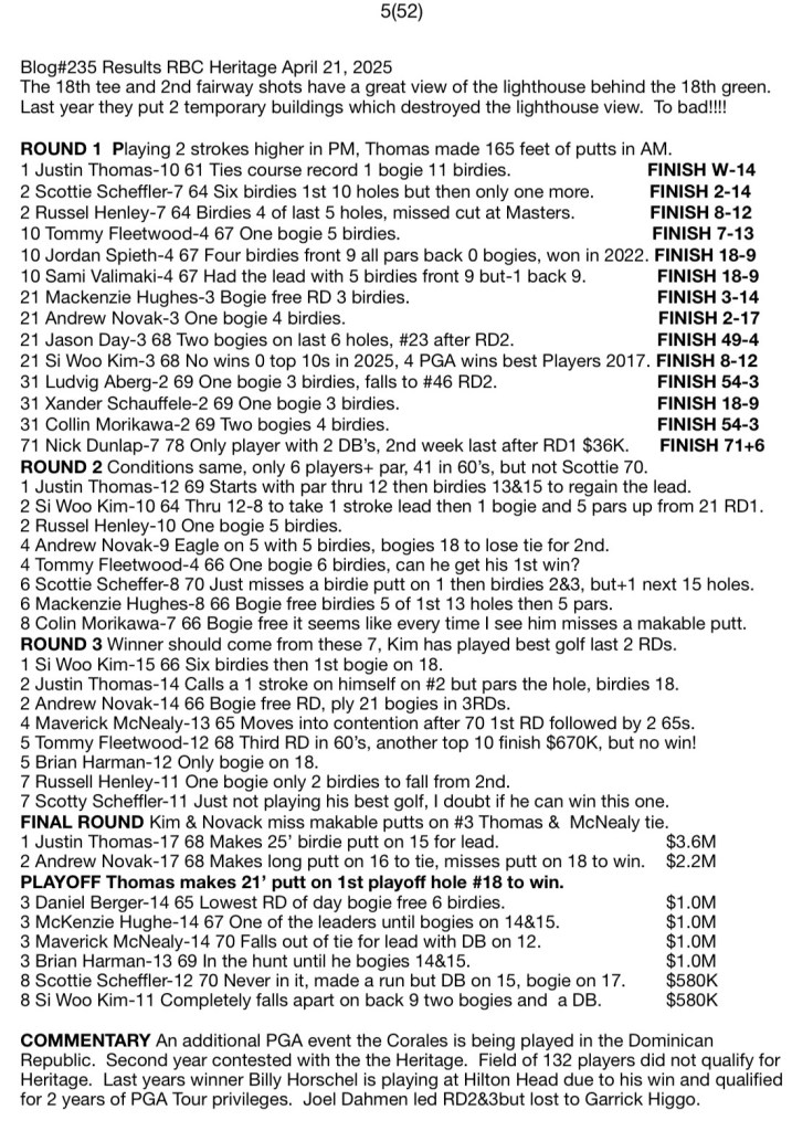 Blog#235 Results RBC Heritage April 21, 2025