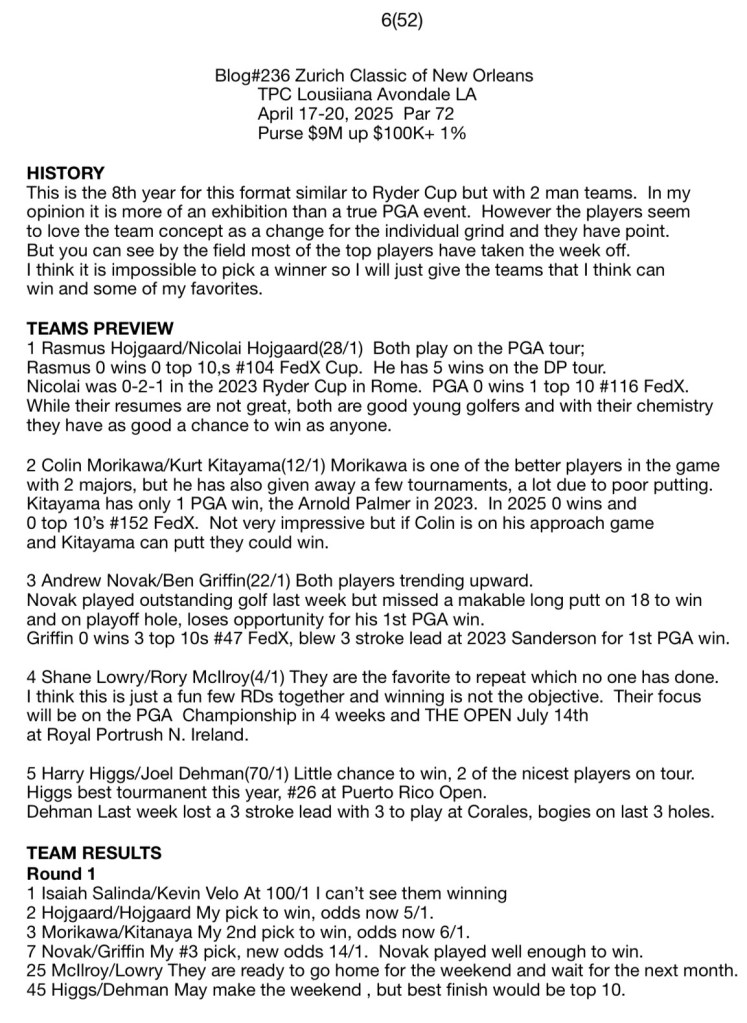 Blog#236 Zurich Classic of New Orleans