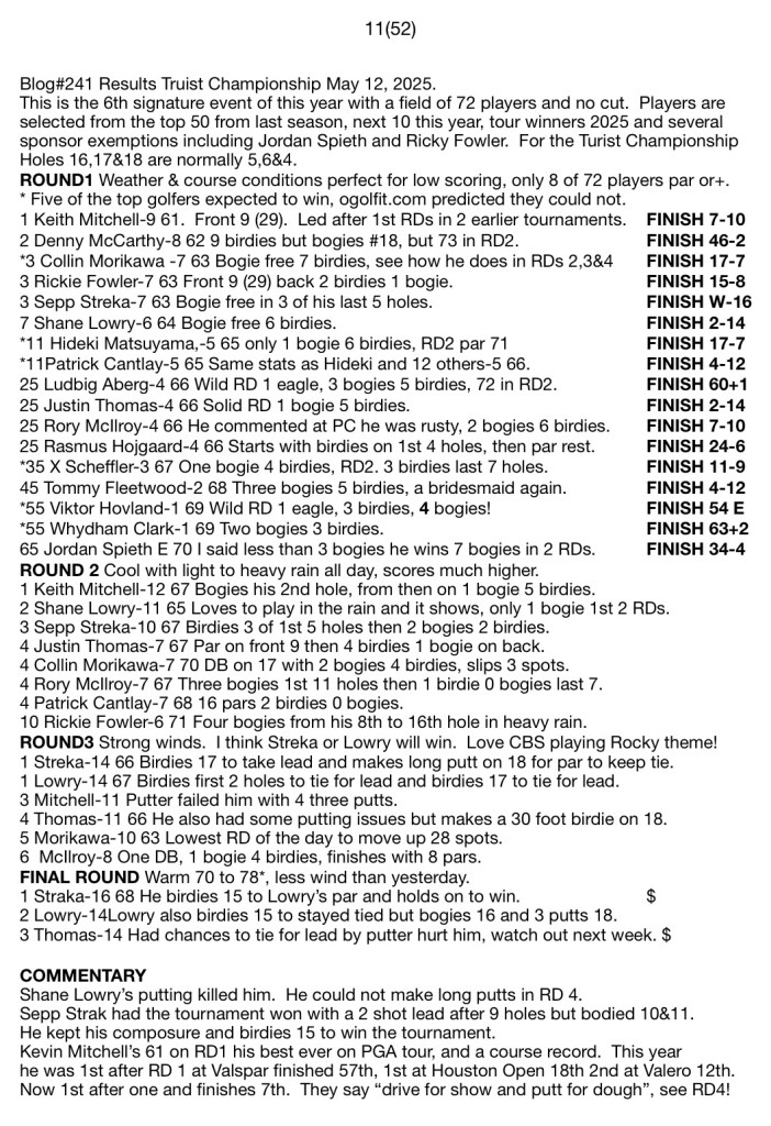 Kevin Mitchell’s 61 on RD1 his best ever on PGA tour, and a course record. This year he was 1st after RD 1 at Valspar finished 57th, 1st at Houston Open 18th 2nd at Valero 12th. Now 1st after one and finishes 7th. They say “drive for show and putt for dough”, see RD4!