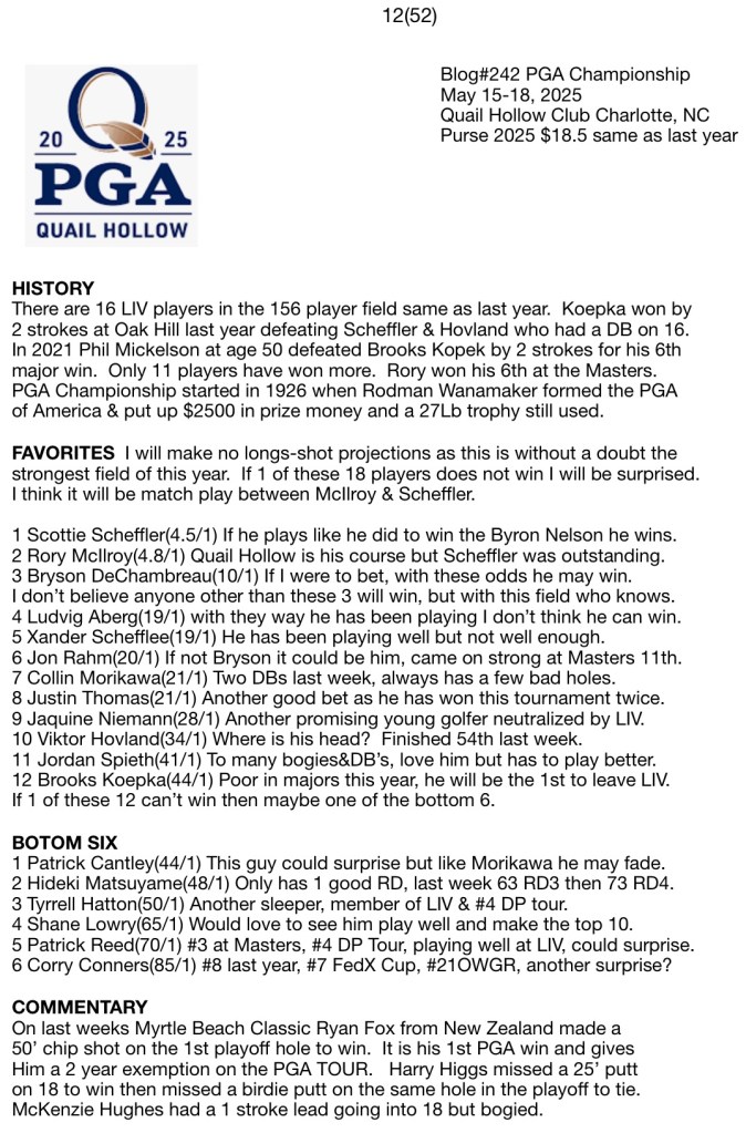 There are 16 LIV players in the 156 player field same as last year. Koepka won by 2 strokes at Oak Hill last year defeating Scheffler & Hovland who had a DB on 16.