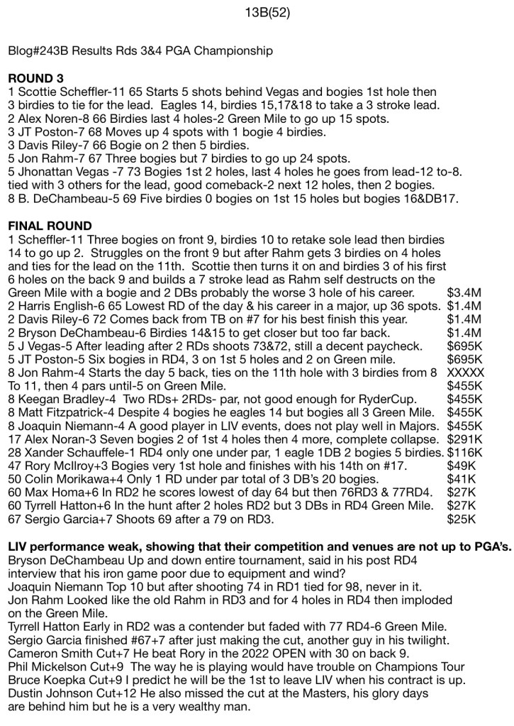 50 Colin Morikawa+4 Only 1 RD under par total of 3 DB’s 20 bogies. $41K