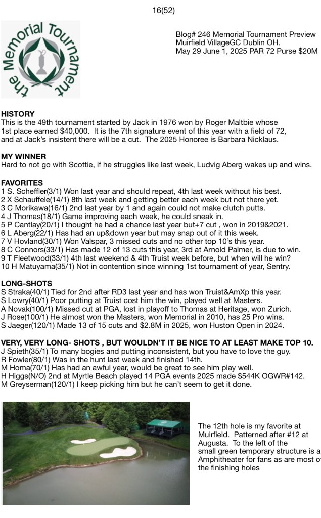Blog# 246 Memorial Tournament Preview