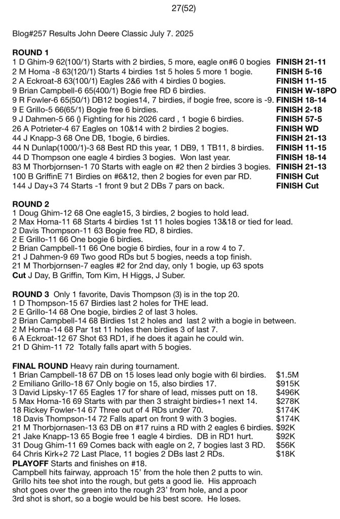 Blog#257 Results John Deere Classic July 7. 2025