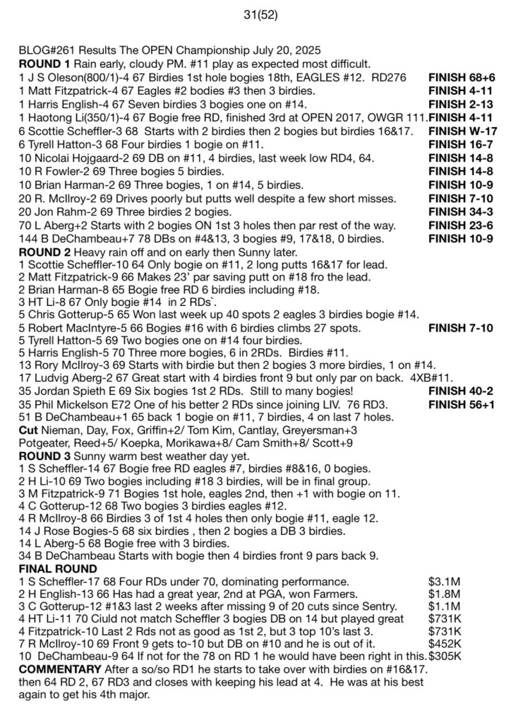 BLOG#261 Results The OPEN Championship July 20, 2025