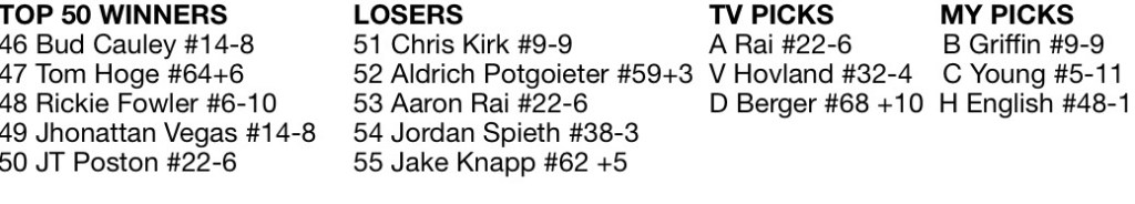 7 Rickie Fowler-4 66 Bogie free 4 birdies FINISH 6-10