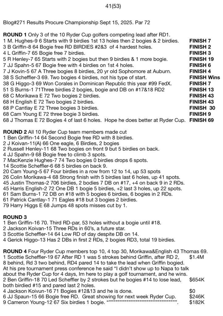 Blog#271 Results Procure Championship Sept 15, 2025. Par 72