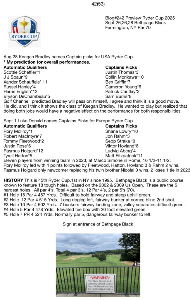 Blog#242 Preview Ryder Cup 2025