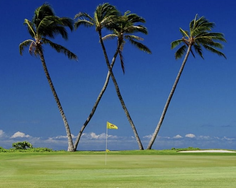 Pictured below is the Par 3 7th hole which is changed to 16 for the tournament. In 2009 Ethan Abbot, a member, suggested forming a W with Palm trees behind the green and was inspired by the W Palm tree scene in the 1963 film “Its a mad mad world”. It has become a popular place on the course where people pose for pictures and plan weddings.