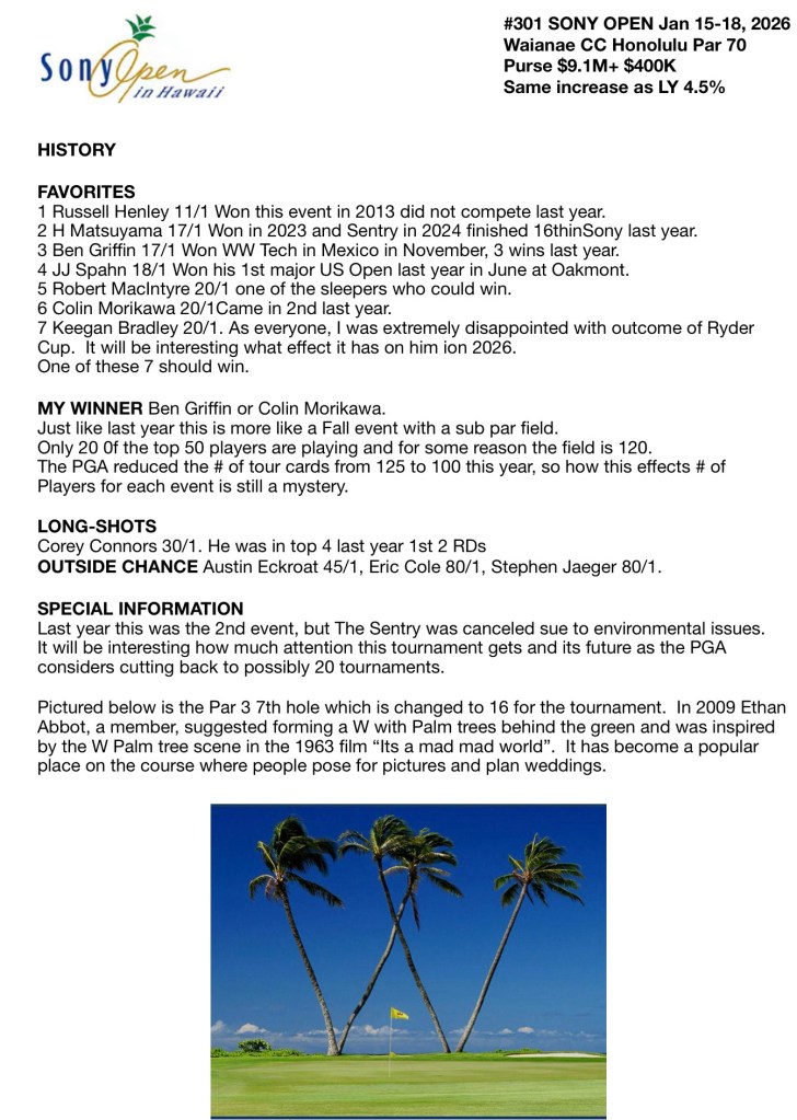2 H Matsuyama 17/1 Won in 2023 and Sentry in 2024 finished 16thinSony last year.