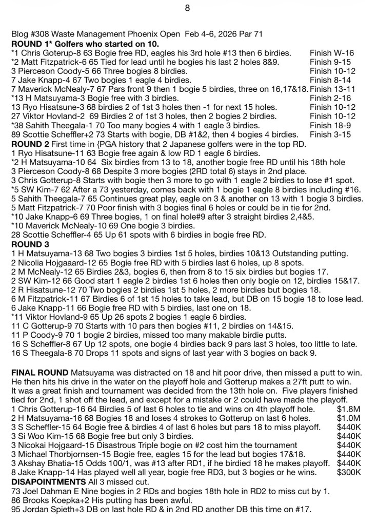 Blog #308 Waste Management Phoenix Open Feb 4-6, 2026 Par 71
