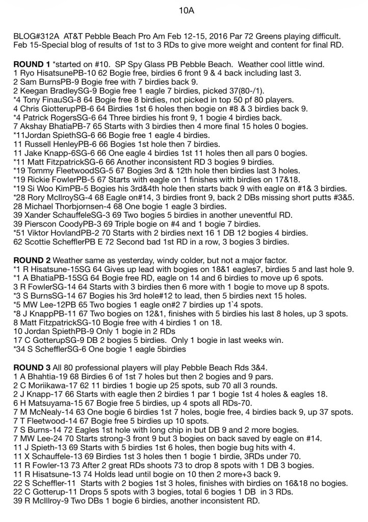 BLOG#312A AT&T Pebble Beach Pro Am Feb 12-15, 2016 Par 72 Greens playing difficult.