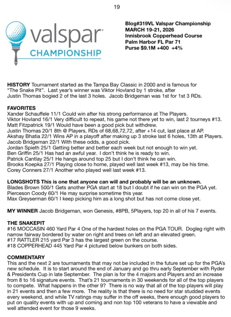 Blog#319VL Valspar Championship MARCH 19-21, 2026