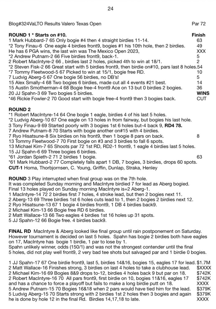 Blog#324VaLTO Results Valero Texas Open Par 72